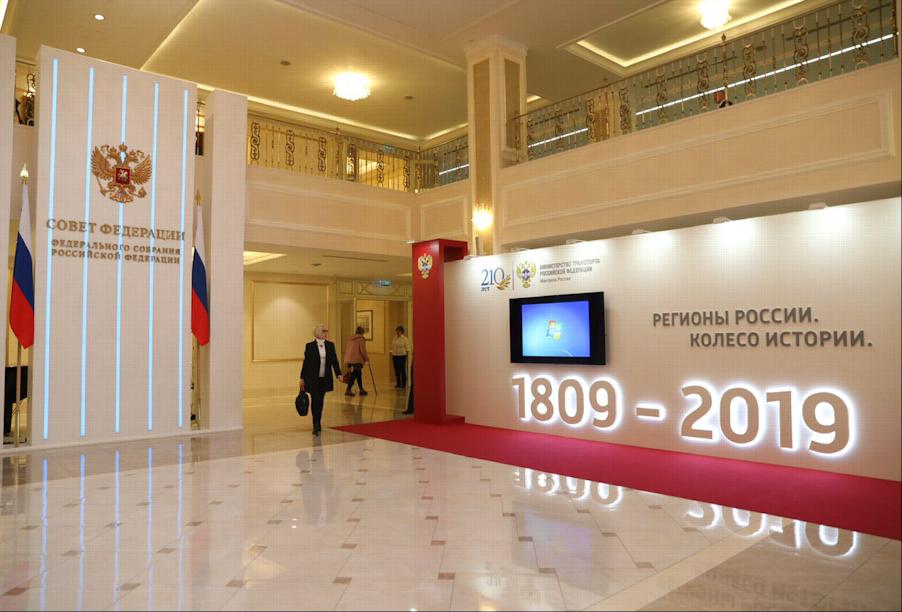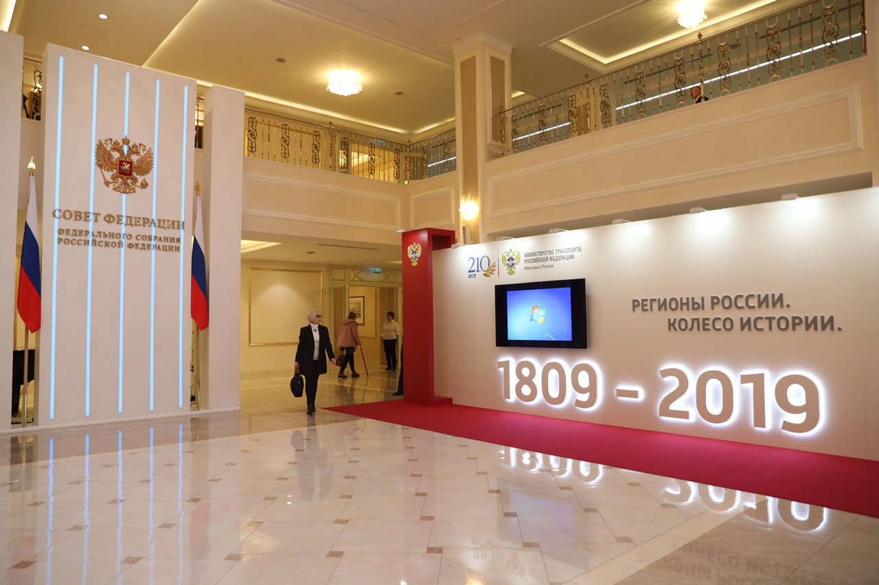 Выставка Минтранса России "Регионы России. Колесо истории" в совете Федерации Федерального Собрания Российской Федерации