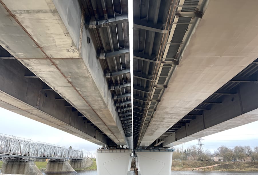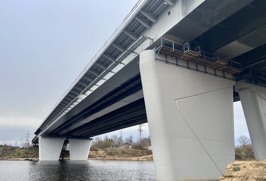 В Твери благодаря национальному проекту «Безопасные качественные дороги» продолжается реализация масштабного инфраструктурного проекта — строительство комплекса Западного моста через реку Волгу.